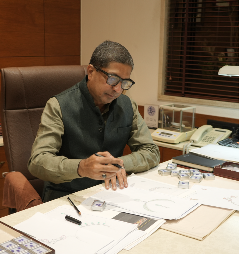 His mind is a tireless workshop, constantly translating the rhythm of nature into the language of fine jewellery. Under his grandfather’s tutelage and in the royal workshops of Vadodara, Harshad learnt that every gemstone has a pulse. He discovered that if you look at a raw “rock” long enough, it will eventually tell you what it wants to become. Today, Harshad practices a Mine-to-Market philosophy, personally hand-selecting raw stones from across the globe. For him, a design is never forced; it is found.