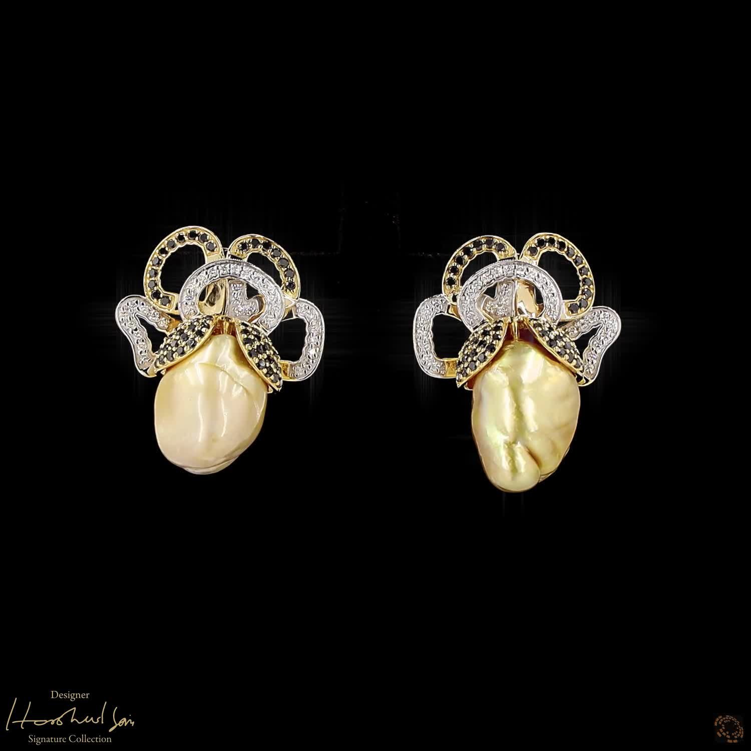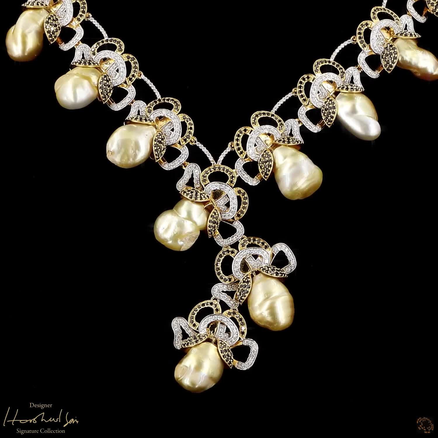 Availability: In StockThis suite is a bold play on light and shadow. The visionary Harshad Soni used over eight hundred black and white diamonds to create a shimmering background for fifteen massive golden pearls. The contrast makes the pearls look like glowing suns hanging in a dark, starry sky. It is a powerful and modern set that brings a sense of mystery and luxury to any occasion.